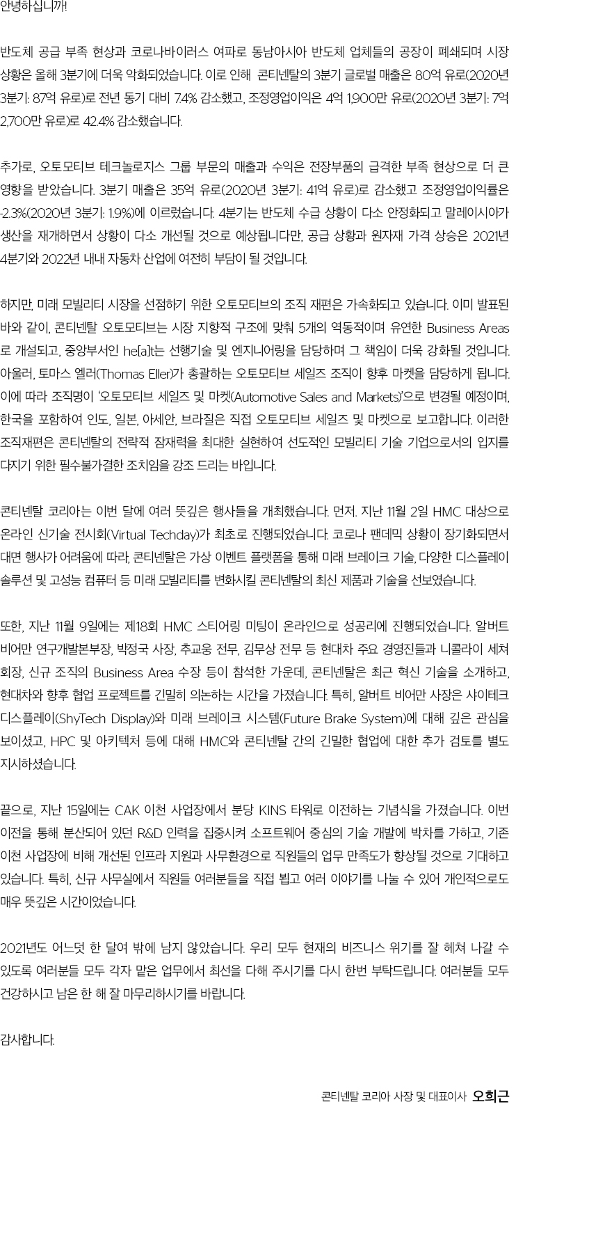 콘티넨탈 코리아 강동윤 대표이사의 CEO 메시지를 확인해보세요.